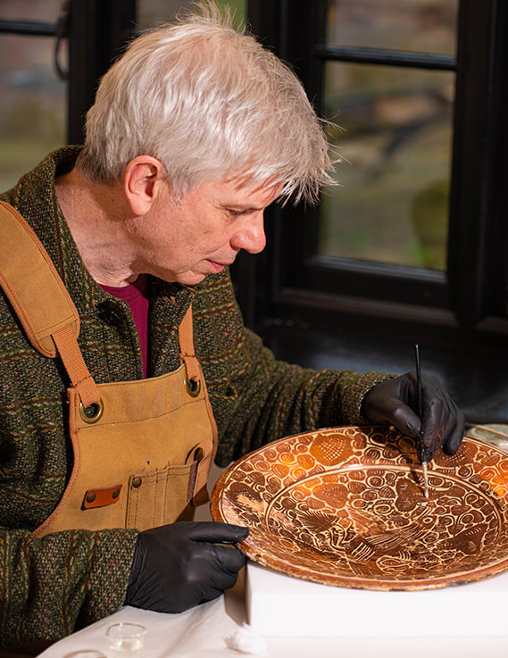 Using best conservation practice in accordance the Institute of Conservation's Code of Conduct and Ethical Guidelines, he undertakes professional conservation and repair of a wide range of ceramics, glass and related materials including stone and enamel for private and commercial clients, heritage organisations (including the National Trust) and museums.